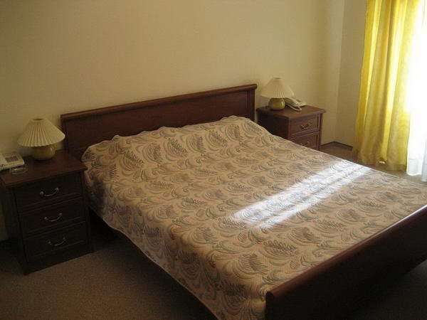 - - 2-местный номер "Апартаменты" (4 номера) - (max 2+2). Номер включает в себя: холл, спальню, гостиную, кухню. На кухне встроенная мебель, холодильник, СВЧ печь, газовая плита, духовка, чайник, набор посуды. В номере санузел (унитаз, умывальник, зеркало, ванна), шкафы для одежды, двуспальная кровать, односпальная кровать, комод, диван, 2 кресла, телевизор, сплит-система, 2 балкона.