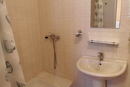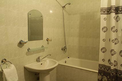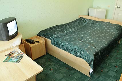 В номере: кровать, 2 прикроватные тумбочки, шкаф, стол, стулья, вешалка, зеркало, сплит-система, ТВ-ЖК, холодильник, телефон. Санузел: с душем (поддон), туалетные принадлежности.
