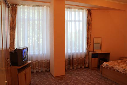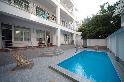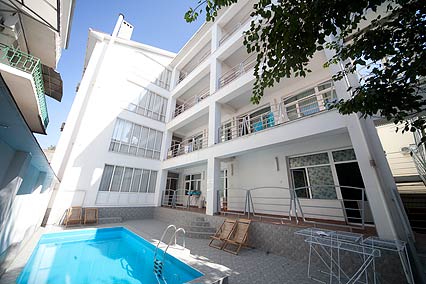 Четырехэтажное здание отеля, построенное в 2003-м году и реконструированное в 2009-м, имеет огороженную территорию с озелененным внутренним двориком. Здесь к услугам отдыхающих любой из около полутора десятка комфортабельных и стильно оформленных номеров категорий: «Стандарт», «Люкс», «Студия» и «Апартаменты» с совмещенным санузлом с душем, телевизором, холодильником и кондиционером. Некоторые из двухместных номеров "Стандарт" имеют выход на общую террасу, у «Люксов» есть отдельный балкон, а у «Апартаментов» собственная терраса, где установлена «дачная» мебель.