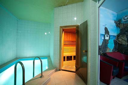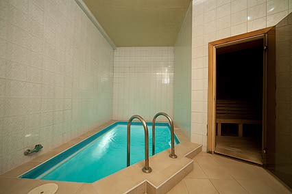 кафе, банный комплекс, финская сауна с бассейном, открытый бассейн с пресной водой, парковка.