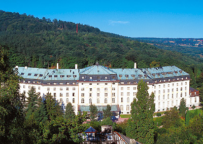 Роскошное комфортабельное здание санатория в стиле модерн находится в окружении лесов в самом центре города.