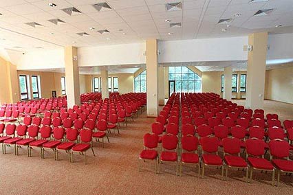 Конференц-зал: от 200 до 440 кресел, в зависимости от расположения. Оборудование: колонки, микрофон, мультимедийный проектор, флип – чарт, экран, доступ в сеть Интернет.