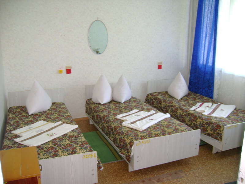 1-комнатный номер, три раздельные кровати, прикроватные тумбы, шкаф, санузел совмещенный (душ, туалет, умывальник), лоджия. Телевизор и холодильник - прокат за дополнительную плату.