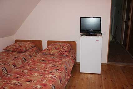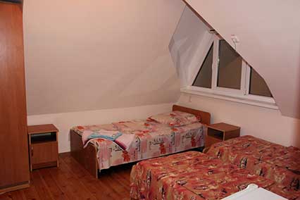 - 2-х местные 1-но комнатные номера с удобствами 16 кв.м. (туалет, умывальник, душ, телевизор, холодильник, кондиционер, 2-спальная кровать). Номера находятся на 2 и 3 этаже.