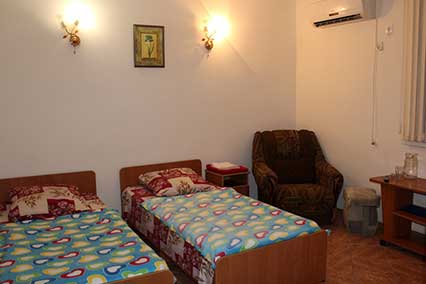 - 2-х местные 2-х комнатные «Семейные номера» с удобствами (туалет, умывальник, душ, телевизор, холодильник, кондиционер, 2 балкона). Номера находятся на 3 этаже.