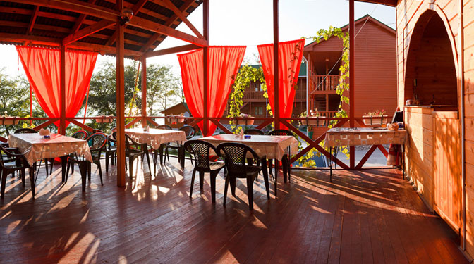 Предоставляется за отдельную плату в летнем кафе – веранда на 40 мест с видом на море, кухня – домашняя с элементами национальной.