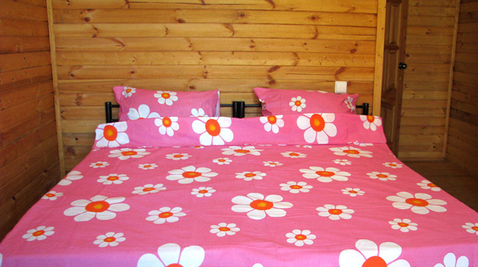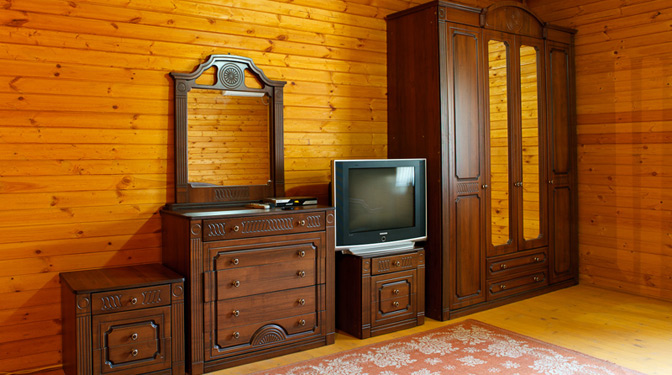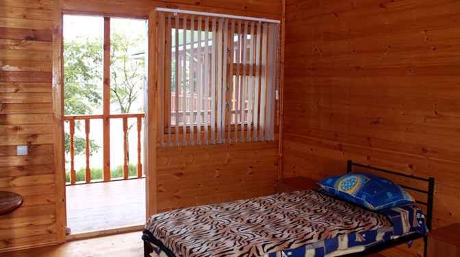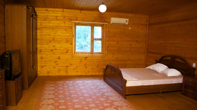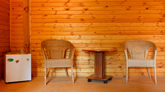 Все номера – обшиты ароматным деревом от пола до потолка.