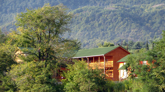 Пансионат «Мандарин» в Новом Афоне построен из экологически чистых материалов и прекрасно подходит для отдыха всей семьей.