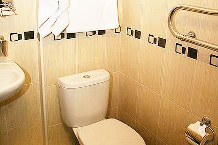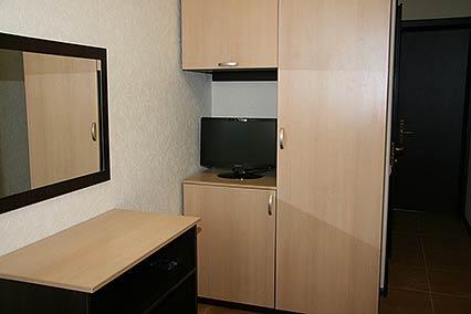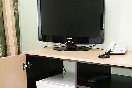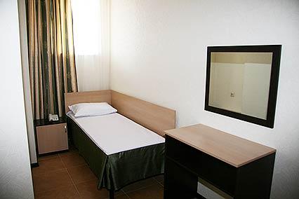 в номере: односпальная кровать, ТВ, мини-бар, сплит-система, телефон, сейф, фен, душ, туалет. Номера без балкона, с небольшим окном.