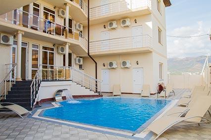 К услугам для комфорта и отдыха: детская площадка, бассейн, бесплатная маршрутка по расписанию до центрального пляжа и обратно. Также к услугам отдыхающих на территории гостевого дома функционирует мини-бар.