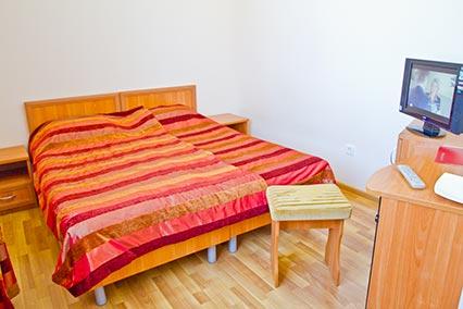 Сервис: уборка номера ежедневно, смена постельного белья 1 раз в 3 дня, смена полотенец 1 разв 3 дня