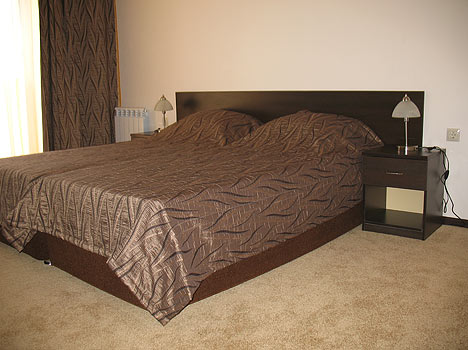Мебель: две односпальные кровати/одна двуспальная кровать, шкаф, стол, стул, вешалка, зеркало