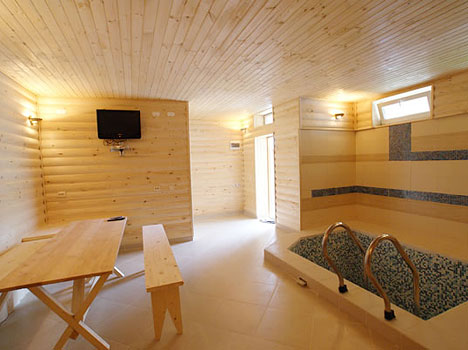 В инфраструктуру отеля включен банный комплекс, основу которого составляет русская баня. На территории комплекса имеется бассейн для тех, кто любит принять водные процедуры, не покидая территорию. В бассейне работает детское отделение. Он располагается на открытом воздухе, подогревается и имеет оборудованную зону отдыха. Открытая охраняемая парковка даст приют транспорту гостей, а в экскурсионном бюро удобно заказывать интересные и познавательные мини-путешествия.