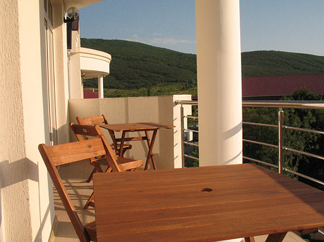 Комплекс, состоящий из нескольких сооружений – три двухэтажных спальных комплекса и отдельное здание столовой – был завершен в 2009 году. Номерной фонд включает три класса номеров: люкс, стандарт и студио, оформленных в легком и необременительном современном дизайне. Оснащенность номеров соответствует всем стандартам гостеприимства. В них имеются сплит-системы и ЖК-телевизоры, наборы посуды и холодильники, санузлы оборудованы ванными и душевыми кабинами. Гостей ожидают наборы туалетных принадлежностей и уютных пляжные полотенца (по запросу). Площади комнат довольно большие, поэтому здесь будет просторно даже большой семье. Номерной сервис включает уборку 1 раз в день, смену постельного белья и полотенец – 1 раз в четыре дня. Окна комнат выходят на горы или море, поэтому гостям доведется полюбоваться великолепными пейзажами. Территория отеля приятно радует глаз, а в непосредственной близости течет звенящий горный ручей.