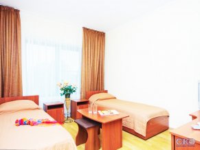 - На 1 этаже– 12 однокомнатных двухместных номеров (блок по два)