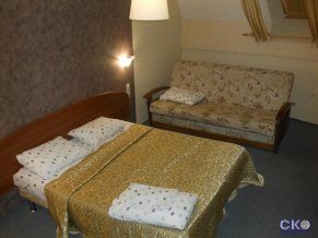- номера «Люкс» 2-х комнатный 5-ти местный «Suite» является его большая площадь, 2 отдельные комнаты, нахождение на 2 этаже, просторная прихожая, санузел с ванной.