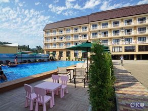 Территория отеля благоустроенная, огороженная на которой находится бассейн с шезлонгами, столиками, зонтами и беседками. Есть место для парковки автомобилей.
