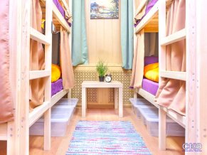 В хостеле 12 номеров категорий: 2 общих на 8 человек, 3 общих на 6 человек, общий проходной на 6 человек, женский на 6 человек, общий на 4 человека, общий проходной на 4 человека, 2 двухместных с двуспальной кроватью и 1 двухместный с двумя раздельными кроватями. На этаже 2 раздельных туалета, 2 раздельные душевые, 1 смежный санузел с душем и туалетом. Горячая вода подается круглосуточно. Каждому гостю предоставляется комплект постельного белья и полотенца. Можно воспользоваться персональным локером в зоне ресепшн, феном, стиральной машиной, утюгом и гладильной доской. Тапочки предлагаются за дополнительную плату.