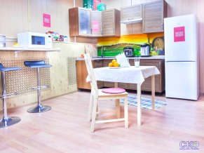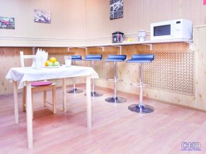 Гостям предлагается континентальный завтрак с хлопьями или овсяной кашей, чай и кофе. Для самостоятельного приготовления пищи есть общая кухня с мультиваркой, микроволновой печью, холодильником, мойкой и столиками. В 100 метрах от хостела расположено кафе авторской кухни, где также могут обедать и ужинать отдыхающие.
