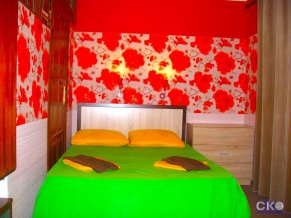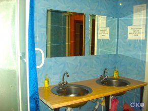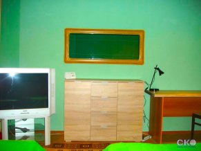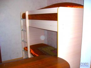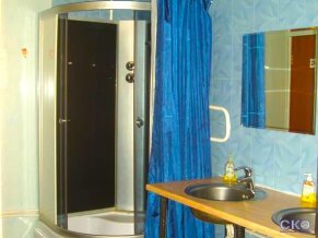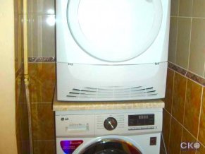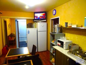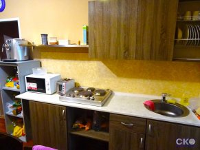Кухня оборудована необходимой техникой (газовая плита, холодильник, микроволновка, кофе машина, необходимой посудой). Есть стол и несколько стульев. Готовить здесь удобно, трапезничать приятно.