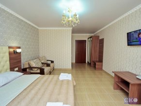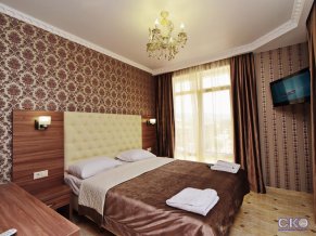 - Улучшенный двухместный номер с балконом. Купол. В номере: двуспальная кровать, прикроватные тумбочки, туалетный столик, стол, стулья, ЖК-телевизор, холодильник, кондиционер, балкон.