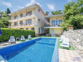 Большие светлые номера, южные балконы, вид на парк и море, расположены на 2-3 этажах. В номере: две отдельные/одна кровать, санузел(душ), доп. место – кресло-кровать / диван-кровать. В номере: кондиционер, ТВ, холодильник, бесплатный Wi-Fi. На территории: парковка, открытый бассейн, кафе, сауна/массажная комната, бильярд, теннис. Усадьба располагает двумя территориями. Номер находится на территории в ста метрах от парка.