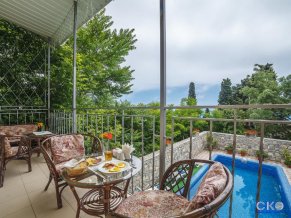 Дом расположен на второй территории, менее 100м от Усадьбы, граничит с Воронцовским парком. Идеальный отдых для большой компании. Четыре комнаты, кухня, два санузла, кондиционеры в каждой комнате, отопление — электрические конвекторы. К услугам гостей бесплатно Wi-Fi, мангал, бильярд, большой стол под платаном, диван-качели, стоянка для машин находится на основной территории Усадьбы. Усадьба располагает двумя территориями.