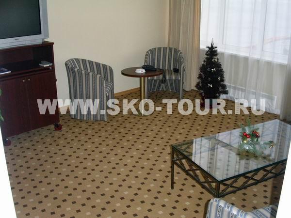 - 2-местный однокомнатный "Стандарт плюс": номер с одной широкой или двумя раздельными кроватями. Площадь номера больше обычного "стандарта", поэтому возможно подселение третьего человека. Номер с широким панорамным окном во всю стену, откуда открывается прекрасный вид на сосновый парк. В номере находится сейф, мини-бар, телефон, спутниковое телевидение, ванная комната (душ, фен), система кондиционирования.