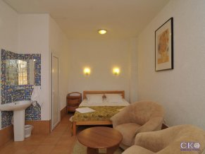 Отель «Шанхай» для семейного отдыха расположен на 1-й береговой линии в 20 метрах от собственного пляжа. До аквапарка и дельфинария можно дойти за 2-3 минуты. В пешей доступности и основные развлечения центра курорта.