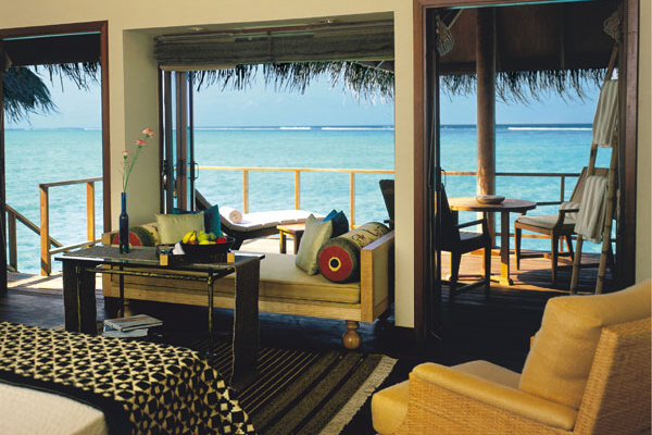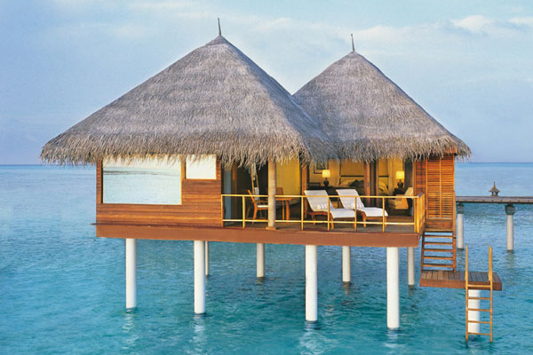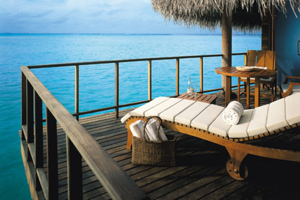 - Indulgence Deluxe Water Villa (85 кв.м) - элегантные водные виллы, терраса с видом на лагуну и с лестницей для спуска в воду, шезлонги, ванная комната со стеклянной стеной и отдельным душем.