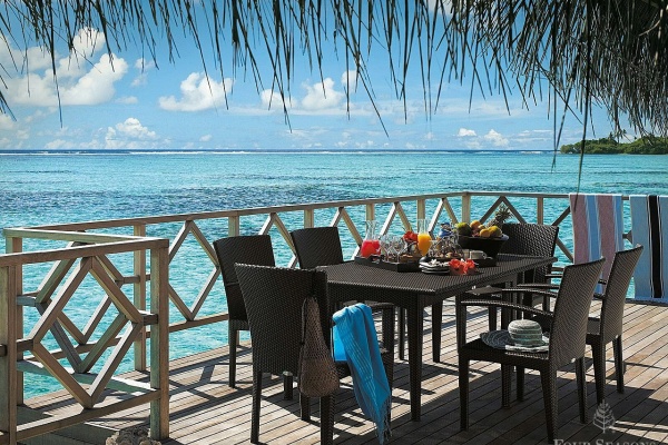 Один из самых престижных и высококлассных отелей на Мальдивах. После реконструкции, которая продолжалась почти 2 года, Four Seasons снова предлагает своим клиентам все самое лучшее в плане элегантной обстановки, высокого сервиса, беззаботной жизни на острове. Интерьеры комнат и других помещений созданы в безупречном современном тропическом стиле – все лаконично, просто, с преобладанием открытого пространства. Легендарный сервис курортов Four Seasons полностью оправдывает свою репутацию. Отличительная черта курорта – то, что оздоровительный центр The Island Spa – это еще один остров, до которого можно добраться за 5 минут на лодке «дони».