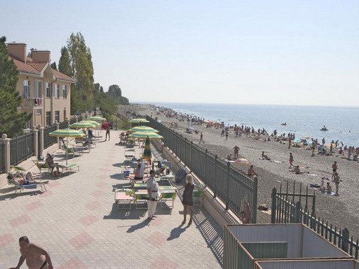 Расстояние до моря составляет всего лишь 200м. Здесь самая широкая пляжная полоса, и отсутствие железной дороги.