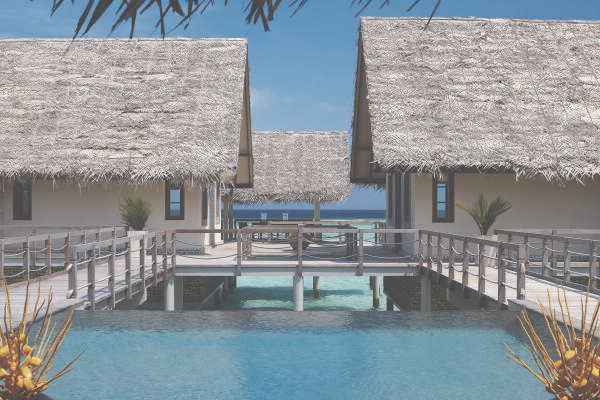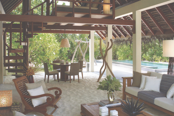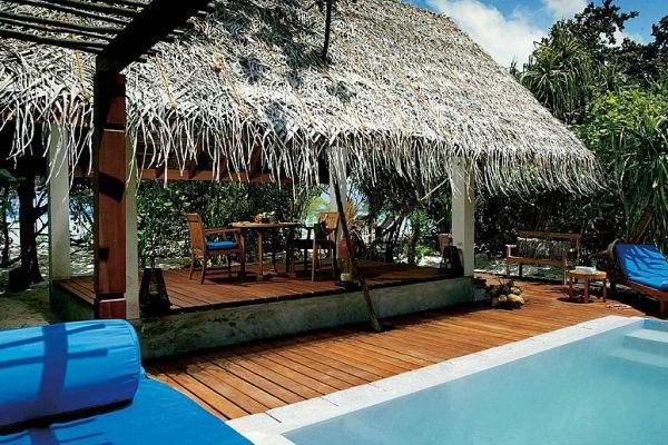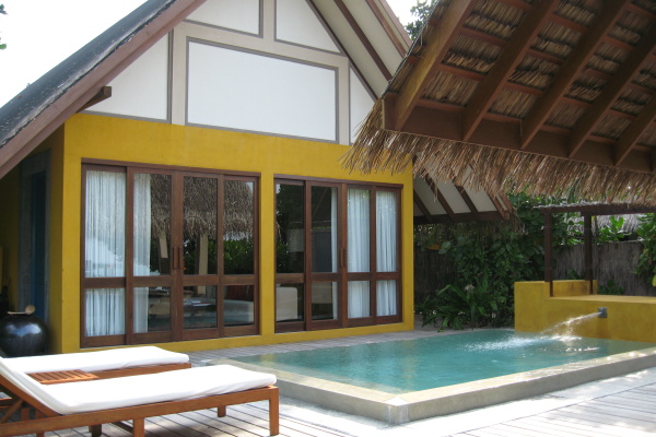 - Beach Bungalows with Plunge Pool: 29 вилл, 75 кв. м, наземные виллы, находятся в северной части острова, на территории сада (91 кв. м)- небольшой бассейн, состоят из открытого павильона для отдыха (гостиная и столовая), оборудованного высокоскоростным доступом в Интернет, и спального павильона с кондиционером, большая ванная комната с двумя умывальниками, большой душ внутри, душ под открытым небом