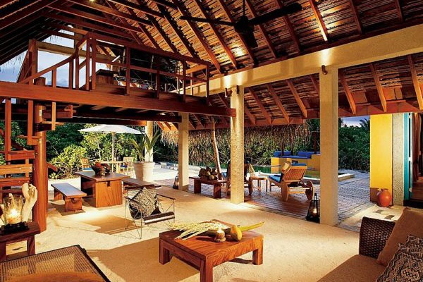 - Two-bedroom Royal Beach Villa: 1 вилла, 310 кв. м, уникальная вилла, находятся на западе острова, на берегу океана, состоит из павильона основной спальни, открытого павильона гостиной/столовой и павильона гостевой спальни – соединенных тиковыми открытыми верандами с использованием водной темы. Большая открытая территория (890 кв. м), бассейн 30 м, со столовой, плавающей на острове в 10 м секции бассейна. Закрытая столовая на 8 чел, полностью оборудованная кухня, холодильник, микроволновая печь, тостер, соковыжималка, кофе-машина. Ванная комната и комната служанки расположены отдельно от жилой зоны. В каждой спальне – кондиционер, место для отдыха, туалет. На внутреннем дворе, в саду – 2 кровати для массажа, шезлонги. Большая ванная комната с двумя умывальниками, большой душ внутри, душ под открытым небом