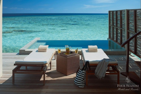 - Beach Villa with Plunge Pool: 30 вилл, 137 кв. м, наземные виллы, находятся в южной части острова,на открытой прилегающей территории (260 кв. м) – бассейн 12 м, терраса с шезлонгами, гамак. Открытый павильон (гостиная/столовая) с песочным полом. Павильон спальни, с кондиционером, отдельной зоной для переодевания. Большая ванная комната с двумя умывальниками, большой душ внутри, душ под открытым небом