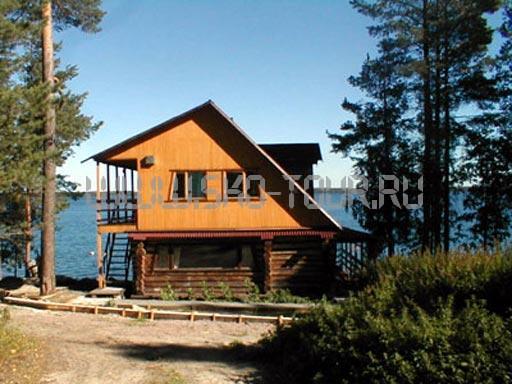 Благоустроенный коттедж, расположенный на самом берегу озера, с балконом, прекрасным видом на озеро, сауной и собственным пирсом.