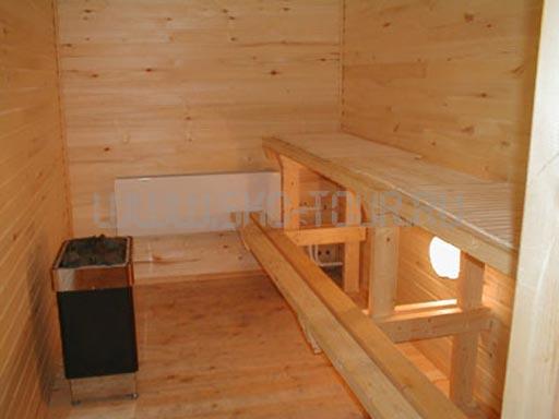 VIP коттедж: на первый этаж: сауна, комната отдыха. На втором этаже: 2-х местная спальня, комната отдыха (мягкая мебель, ТВ), кухня (электроплита, электрочайник, холодильник, посуда, горячая и холодная вода).