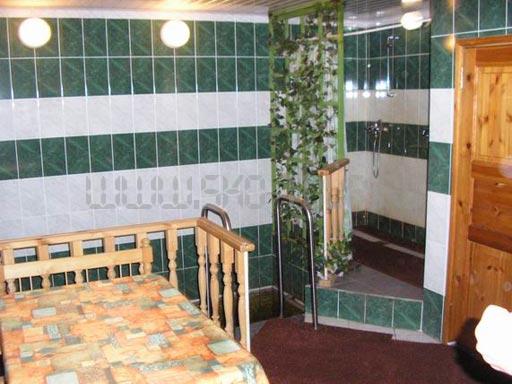 В гостинице сауна с бассейном, мини-кухня (плита, холодильник, набор посуды).